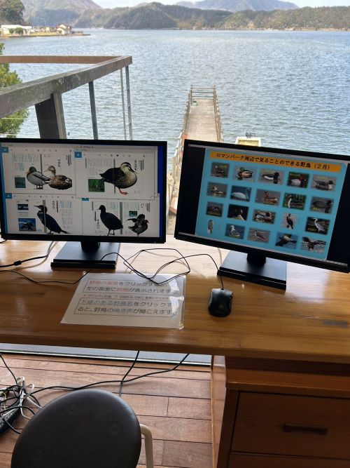 「自然観察棟」の中には望遠鏡があり、どういった野鳥が見えるのか丁寧に解説してくれるパソコンがありました!